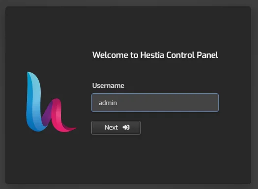 Откройте новую вкладку в вашем любимом браузере и войдите в панель Hestia, используя реквизиты, предоставленные на предыдущем шаге;